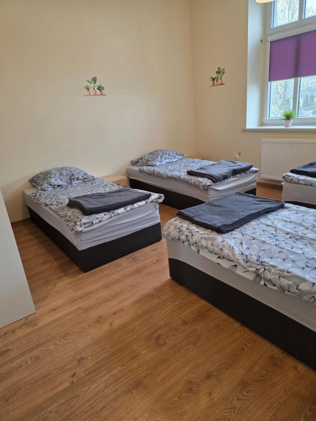 Pokój wieloosobowy dla mężczyzn. The dormitory room includes a shared bathroom equipped with a shower. The unit offers 5 beds. Pokój Wieloosobowy - 5 osobowy. ;