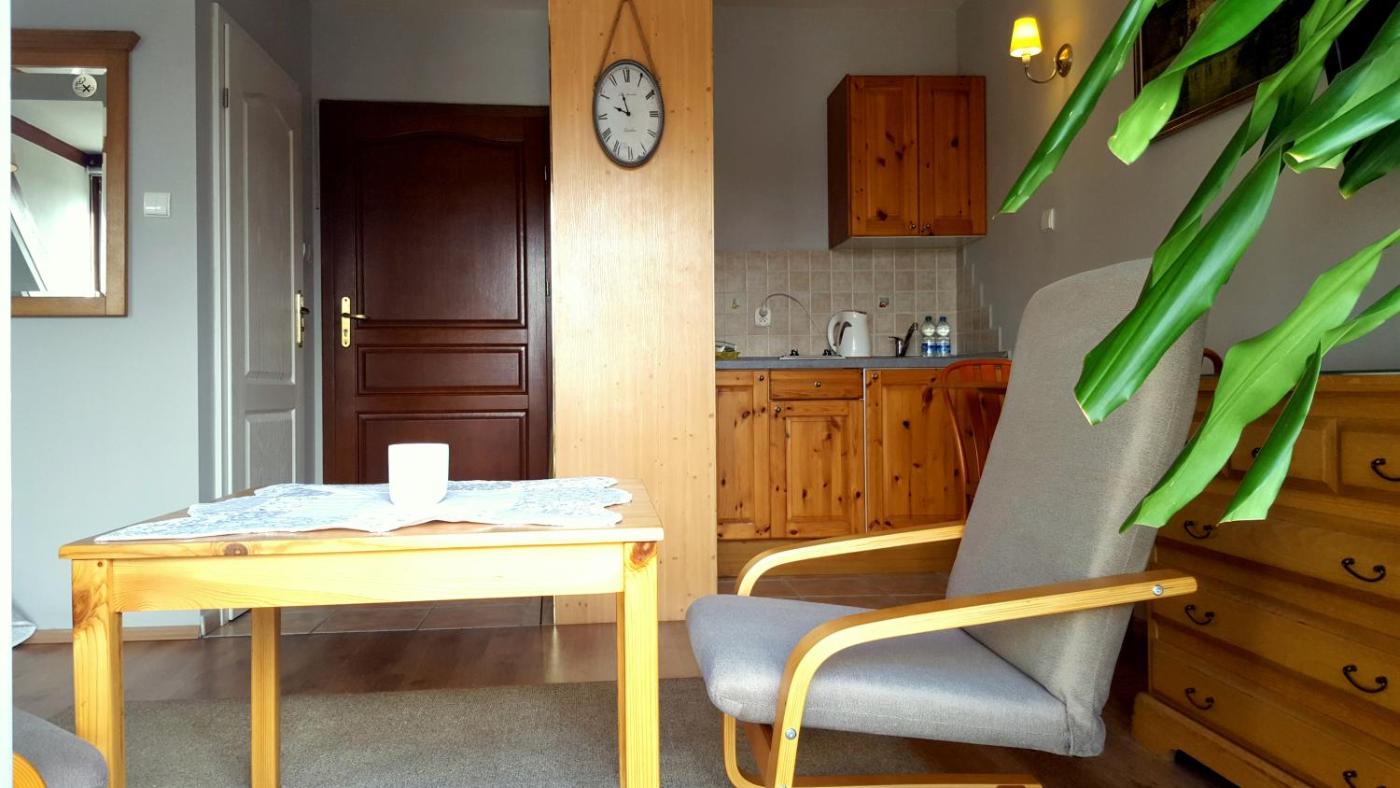 Apartament (2 osoby dorosłe). Apartament ten dysponuje częścią wypoczynkową oraz aneksem kuchennym z czajnikiem elektrycznym. Apartament - 2 osobowy. Powierzchnia pokoju ok.: 50 mkw.